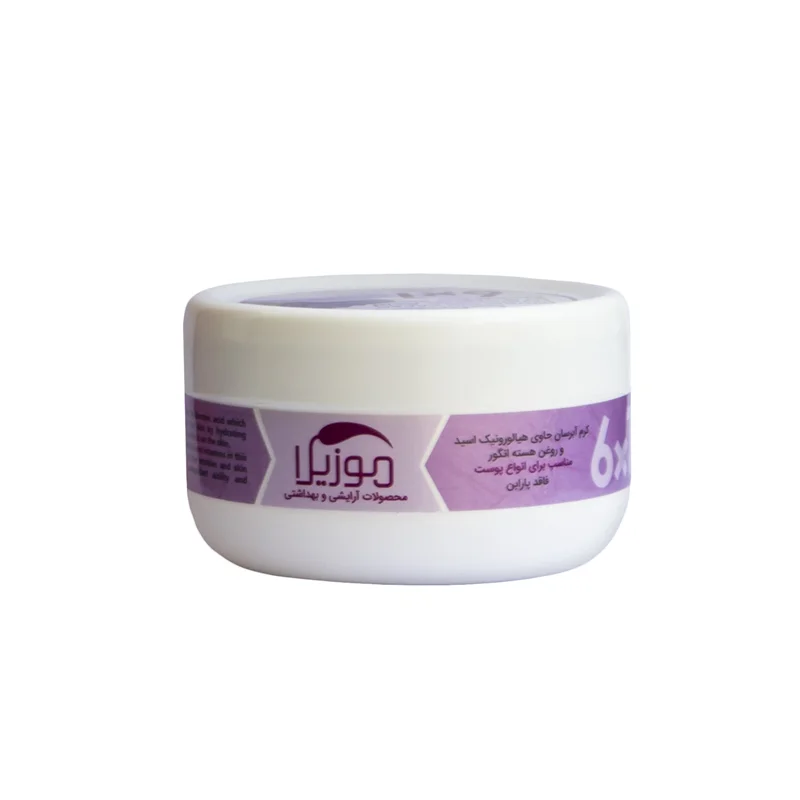 کرم آب رسان و هیالورونیک اسید حاوری روغن هسته انگور 6 کاره دست و صورت موزیلا ، یک نرم کننده عالی برای آبرسانی سطح پوست،آنتی اکسیدان روشن کننده ، جوانساز و .. است. بافت این کرم بسیار سبک و سرعت جذب آن بالاست که موجب نفوذ در عمق پوست شده و تاثیری بیشتر بر پوست دارد. ترکیبات این محصول عبارتند از روغن هسته انگور، شی باتر ، هیالورونیک اسید ، روغن جوجوبا، ویتامین c و موم زنبور عسل و ... که همگی خاصیتی ضد پیری و تغذیه کننده پوست دارند. کرم آب رسان دست و صورت موزیلا ، کرمی با بافت غیر چرب می باشد که نرم کننده سطحی پوست است و با افزایش مواد جاذب آب و ماندگاری بالای رطوبت در پوست، به تقویت سیستم محافظتی سطح پوست کمک میکند.