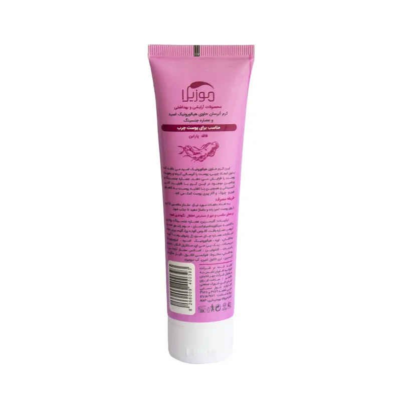 کرم آب رسان و هیالورونیک اسید حاوی جینسینگ 6 کاره دست و صورت موزیلا ، یک نرم کننده عالی برای آبرسانی سطح پوست،آنتی اکسیدان روشن کننده ، جوانساز و .. است. بافت این کرم بسیار سبک و سرعت جذب آن بالاست که موجب نفوذ در عمق پوست شده و تاثیری بیشتر بر پوست دارد. ترکیبات این محصول عبارتند از عصاره جینسینگ، آلوئه ورا ، چای سبز ، هیالورونیک اسید ، روغن ماکادمیا ، ویتامین A و موم زنبور عسل و ...که همگی خاصیتی ضد پیری و کنترل کننده چربی و ... پوست را دارند. کرم آب رسان دست و صورت موزیلا ، کرمی با بافت غیر چرب می باشد که نرم کننده سطحی پوست است و با افزایش مواد جاذب آب و ماندگاری بالای رطوبت در پوست، به تقویت سیستم محافظتی سطح پوست کمک میکند.